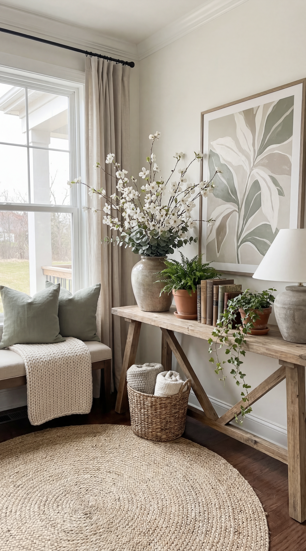 Rather than adding more items, they are editing. One or two intentional pieces. More open space. Decor that feels natural year round, with subtle spring influence instead of obvious seasonal labels.